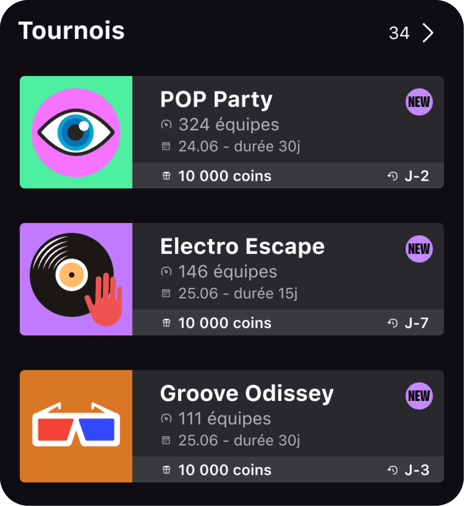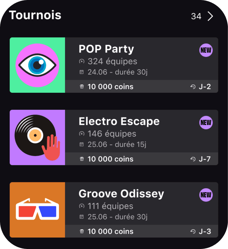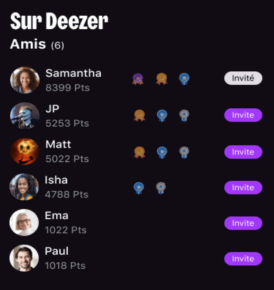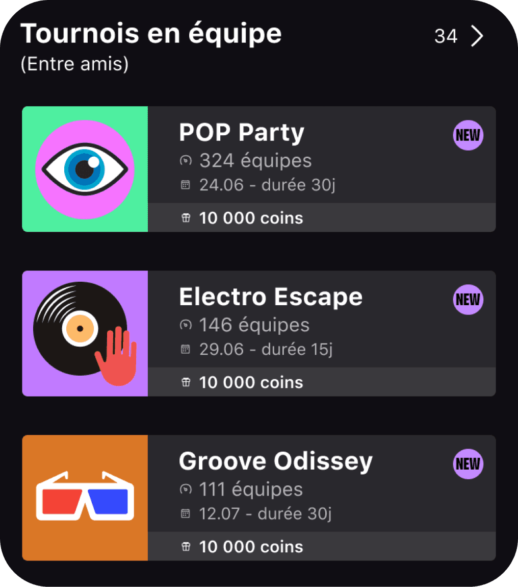 We developed a feature that allows users to build a team with their friends from Deezer and beyond, and challenge other teams in multiplayer competitions centered around their favorite themes.